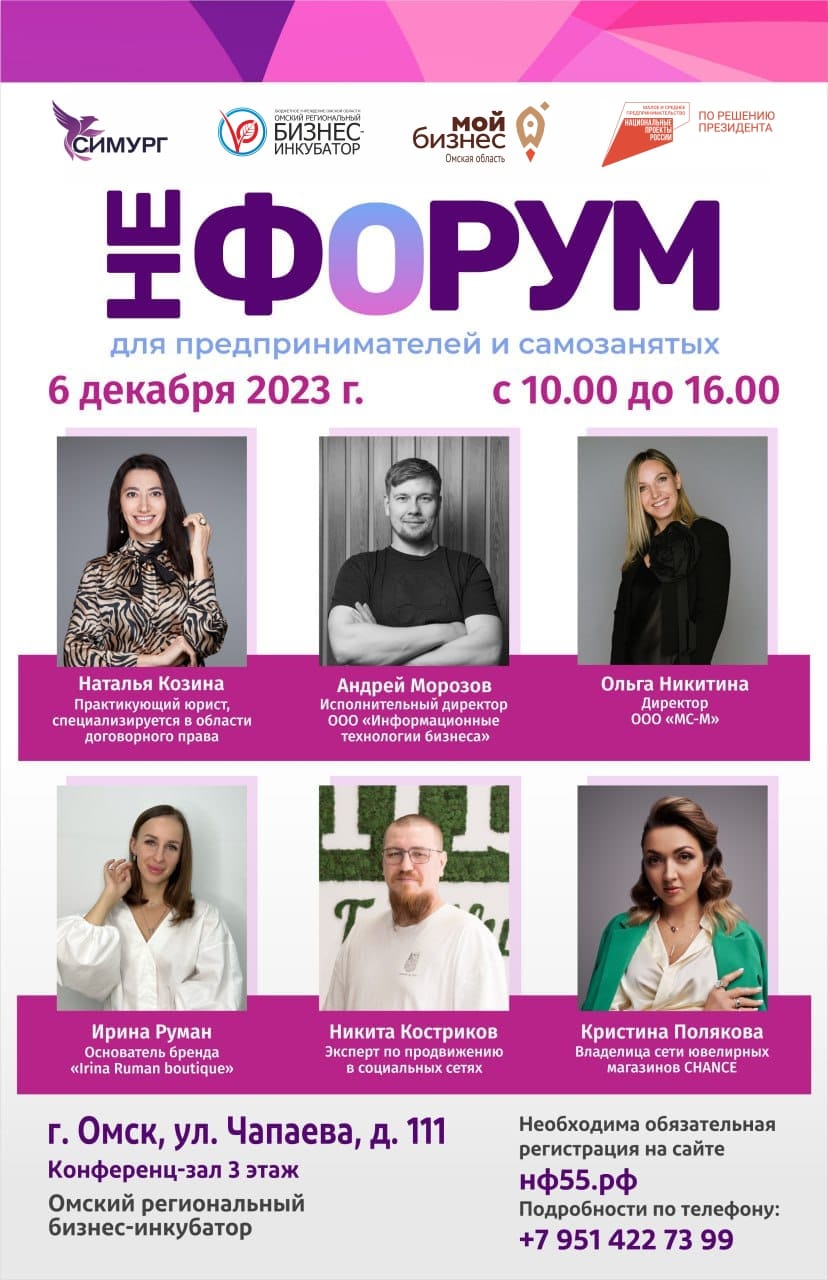 6 декабря 2023 года с 10.00 до 16.00 на площадке Омского регионального бизнес-инкубатора пройдет форум «НеФорум».